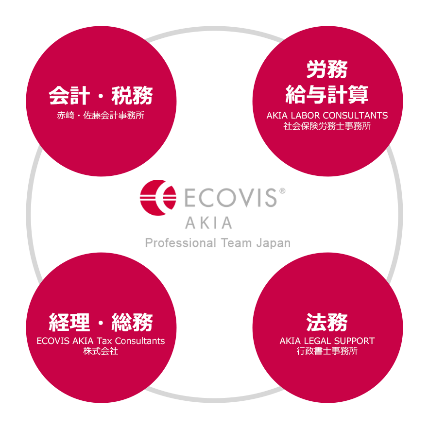 グループ内に税理士事務所・社会保険労務士事務所・行政書士事務所を擁し、外資系企業の日本での活動を、税務・会計/給与計算・労務手続き/法人設立・ビザ申請・その他法務手続き/キャッシュマネジメントなどの面からワンストップでサポートしております。